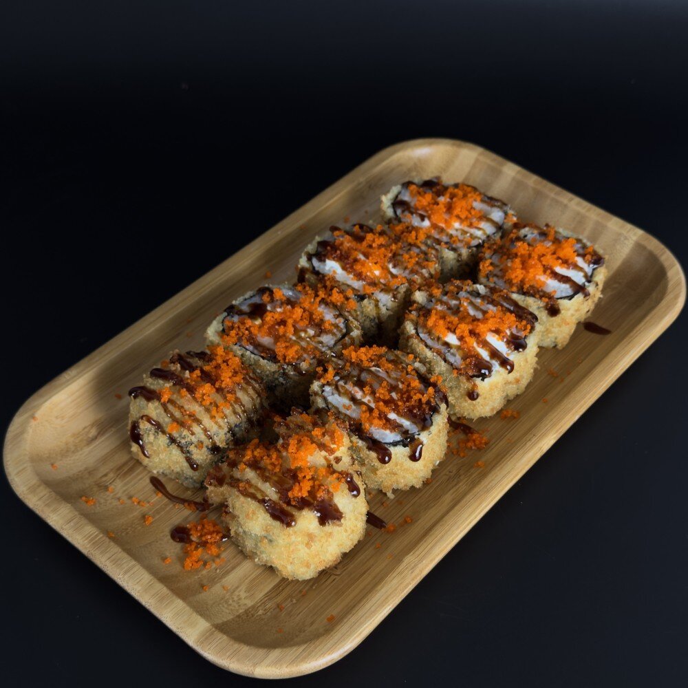 Масаго икра, креветка, сыр Cremettе, соус унаги, панировка