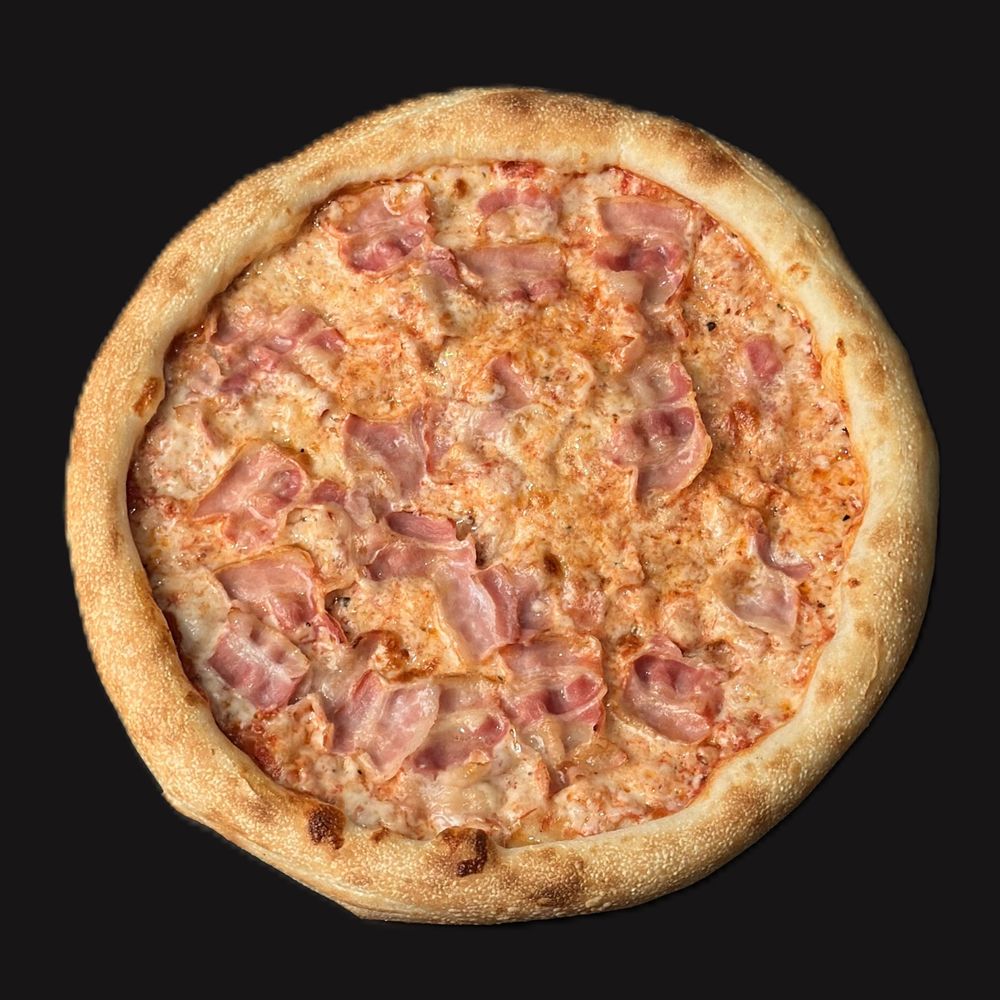 Красный соус на основе томатов, Моцарелла, Бекон.