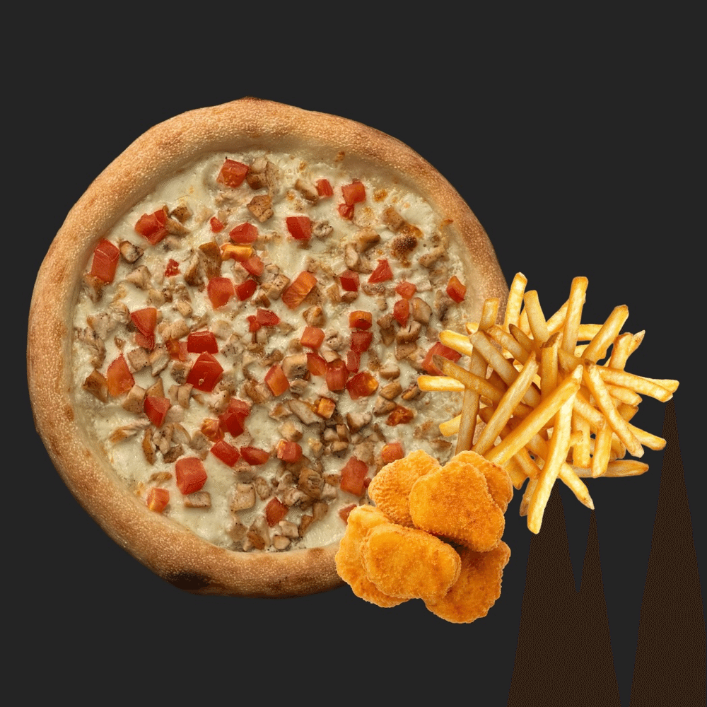 Пицца с курицей, Фри 150 гр., Наггетсы 8шт.