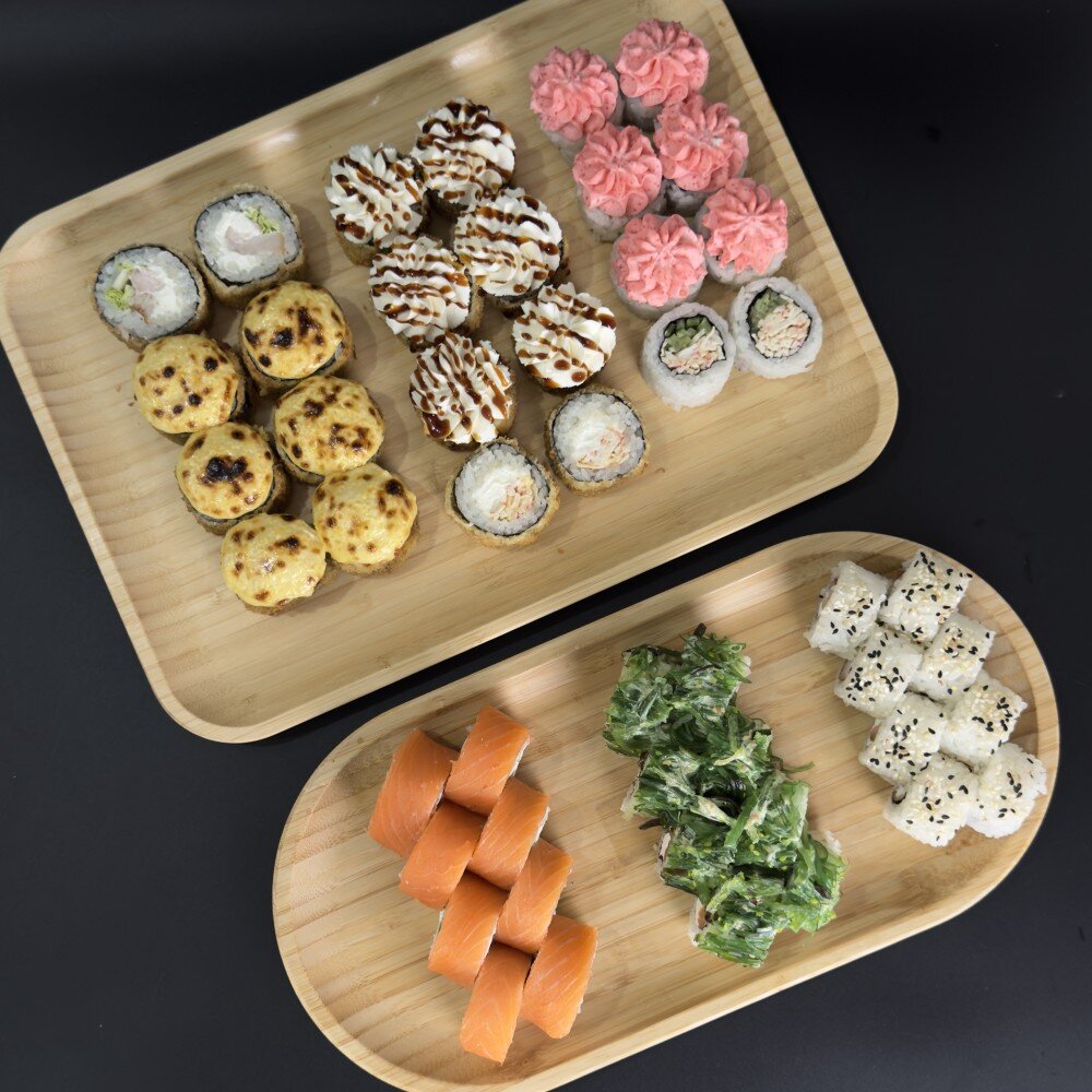 Филадельфия стандарт 8шт, Лосось Тар-тар стандарт 8шт, МР. Креветка стандарт 8шт, Канада стандарт 8шт, Филадельфия ЗП стандарт 8шт, Филадельфия Эсколар стандарт 8шт, Лава лосось стандарт 8шт, соевый 5шт, васаби 4шт, имбирь 4шт